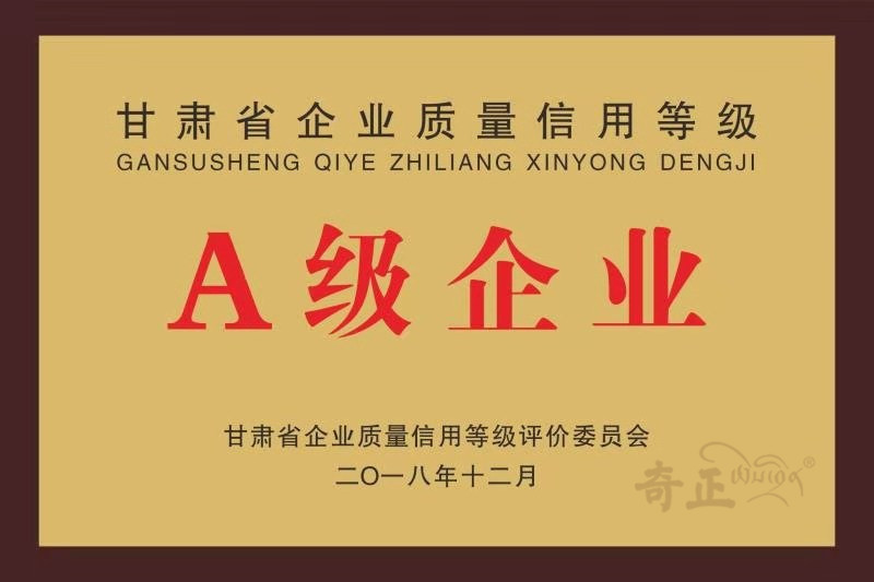 甘肅省質(zhì)量信用等級A級企業(yè)