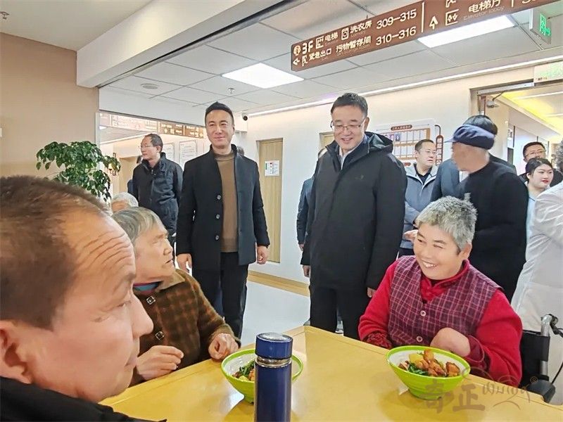 調(diào)研過程正趕上長(zhǎng)者們的用餐時(shí)間,領(lǐng)導(dǎo)們步入用餐區(qū),溫馨愉悅的氛圍撲面而來,老人們圍坐餐桌旁,飯菜熱氣騰騰,營(yíng)養(yǎng)搭配豐富。各級(jí)領(lǐng)導(dǎo)與老人們紛紛交流,關(guān)切詢問飯菜是否可口以及日常生活情況,茍廳長(zhǎng)認(rèn)真查看了奇正康養(yǎng)在照護(hù)方面采取的詳細(xì)舉措,了解護(hù)理人員對(duì)于長(zhǎng)者的“九防”和“五?!惫芾砝砟睿敿?xì)詢問長(zhǎng)者離院管理等方面的管理措施。同時(shí),對(duì)于康養(yǎng)院照護(hù)工作中開展的培訓(xùn)、演練、長(zhǎng)者照護(hù)等日常工作給予了高度肯定。