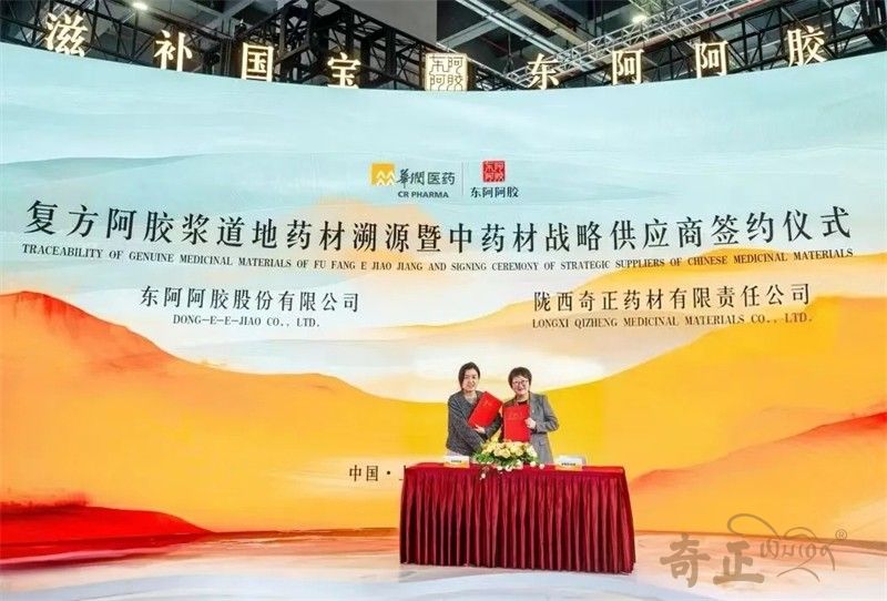 2024年11月10日,在第七屆中國國際進口博覽會上,奇正中藥下屬隴西奇正藥材有限責任公司(以下簡稱“隴西奇正”)與東阿阿膠股份有限公司(以下簡稱“東阿阿膠”)簽署戰(zhàn)略合作協(xié)議,隴西奇正成為東阿阿膠復方阿膠漿道地藥材溯源中藥材戰(zhàn)略供應商,標志著兩家企業(yè)資源互補、優(yōu)勢共享,共同致力于中醫(yī)藥產(chǎn)業(yè)的高質(zhì)量發(fā)展。
