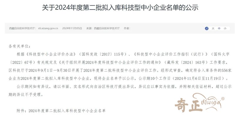 2024年11月7日西藏自治區(qū)科學(xué)技術(shù)廳發(fā)布了“關(guān)于2024年度第二批擬入庫(kù)科技型中小企業(yè)名單的公示”,科技型中小企業(yè)認(rèn)證是對(duì)企業(yè)技術(shù)實(shí)力和經(jīng)營(yíng)管理能力的有力肯定,林芝雪域資源科技有限公司獲此殊榮。