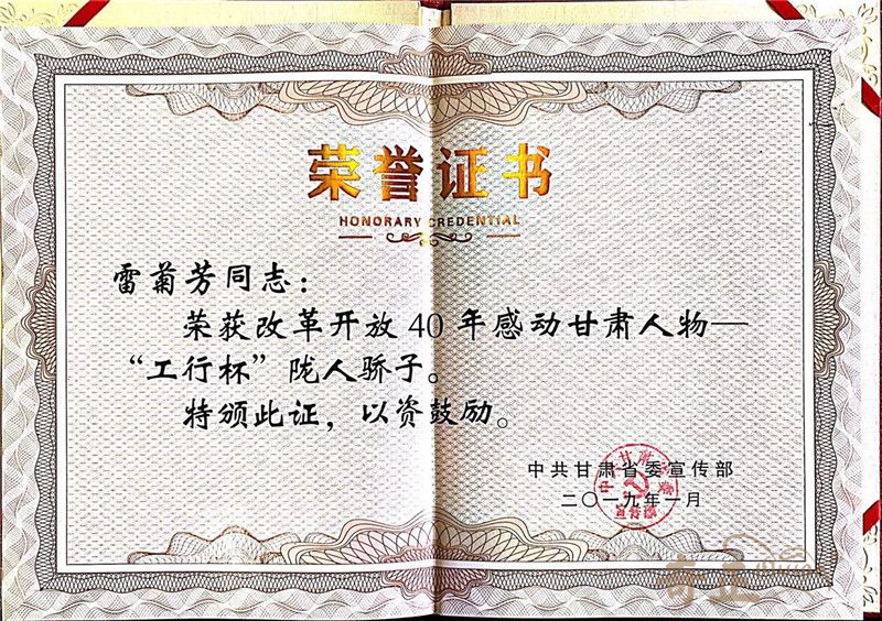 2019年改革開放四十年感動甘肅人物-工行杯“隴人驕子”-雷菊芳