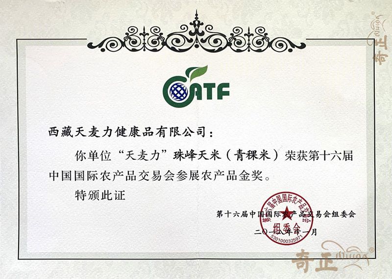 珠峰天米(青稞米)金獎