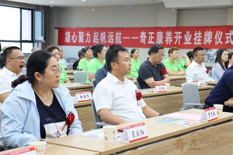 在現(xiàn)場熱烈的掌聲中,領(lǐng)導(dǎo)嘉賓共同為奇正康養(yǎng)揭牌。紅布緩緩揭開,牌匾熠熠生輝,象征著奇正康養(yǎng)正式揚(yáng)帆起航。